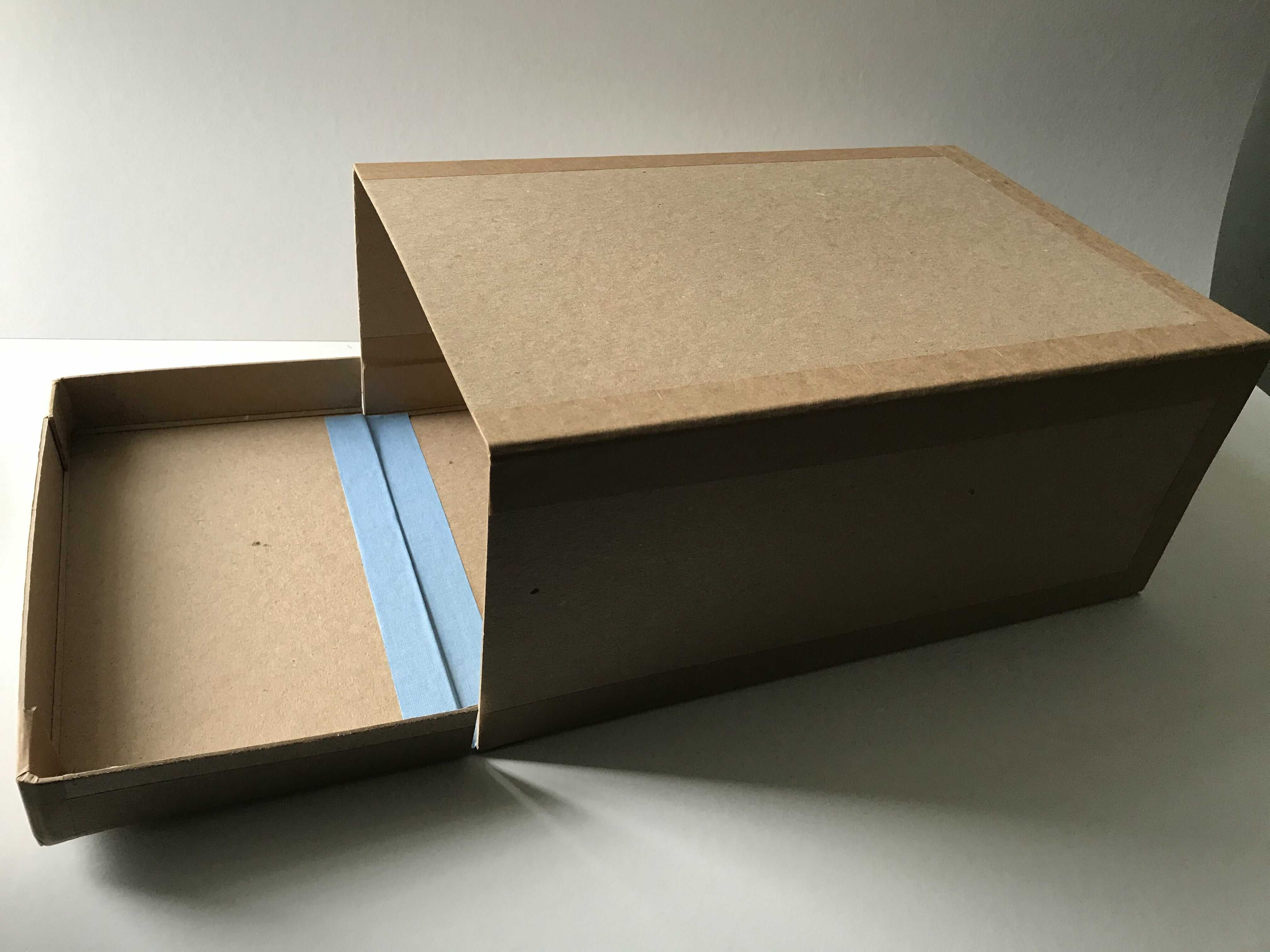 1. Коробки виготовляються із 1,5 - 2,5 мм картону, або ДВП (дерев'яно-волокниста плита) шляхом склеювання сторін по ребрах коробки з зовнішньої сторони смугою із тканини (будь-якого кольору) завширшки 4-5 см.