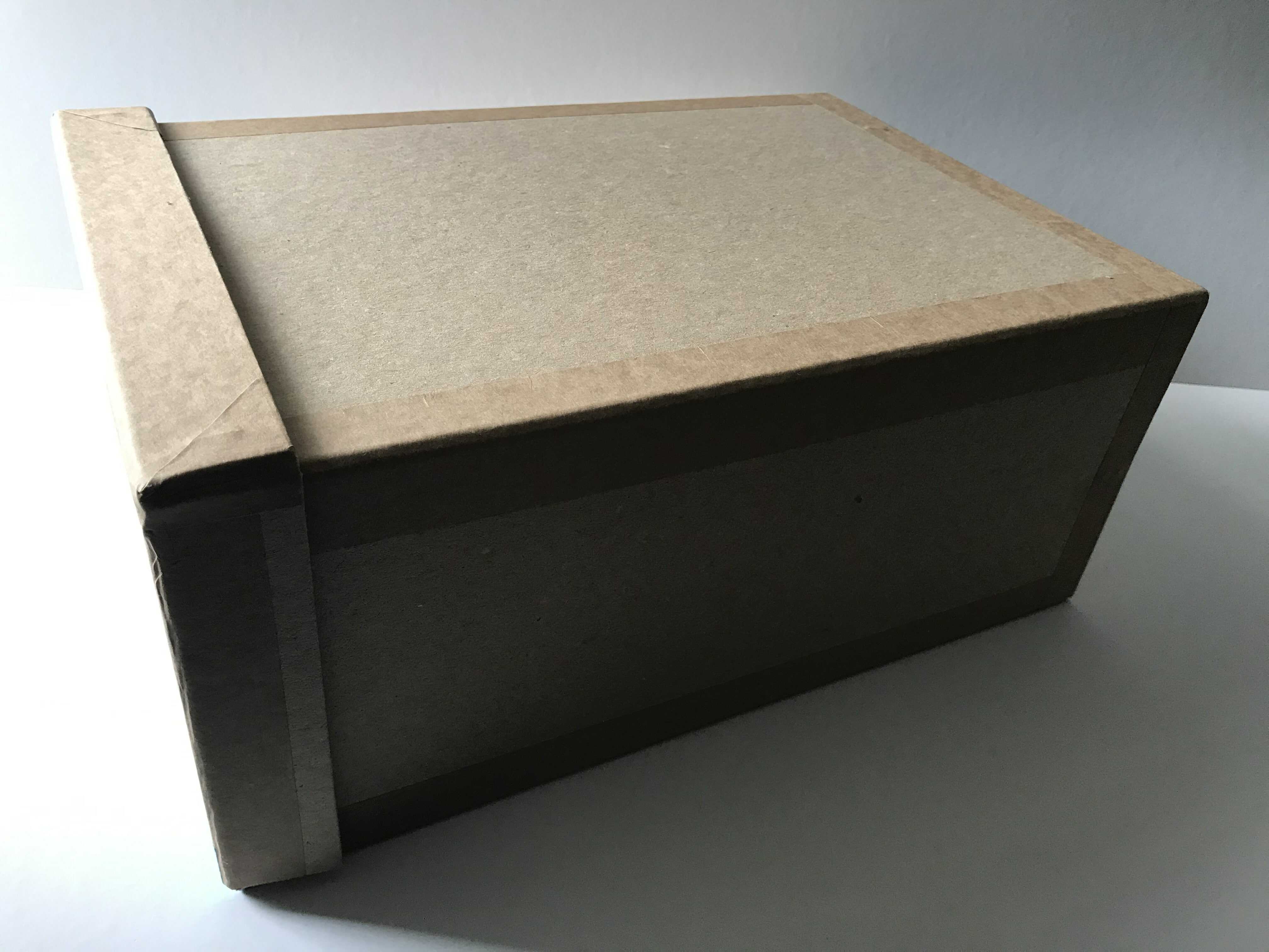 2. Ззовні, зі всіх сторін, коробка обклеюється папером типу Крафт". При наклеюванні паперу потрібно відступати від ребра коробки на 3-5 мм. На папір клей наноситься на всю поверхню з тим, щоб під ним не створювалось пустот.
