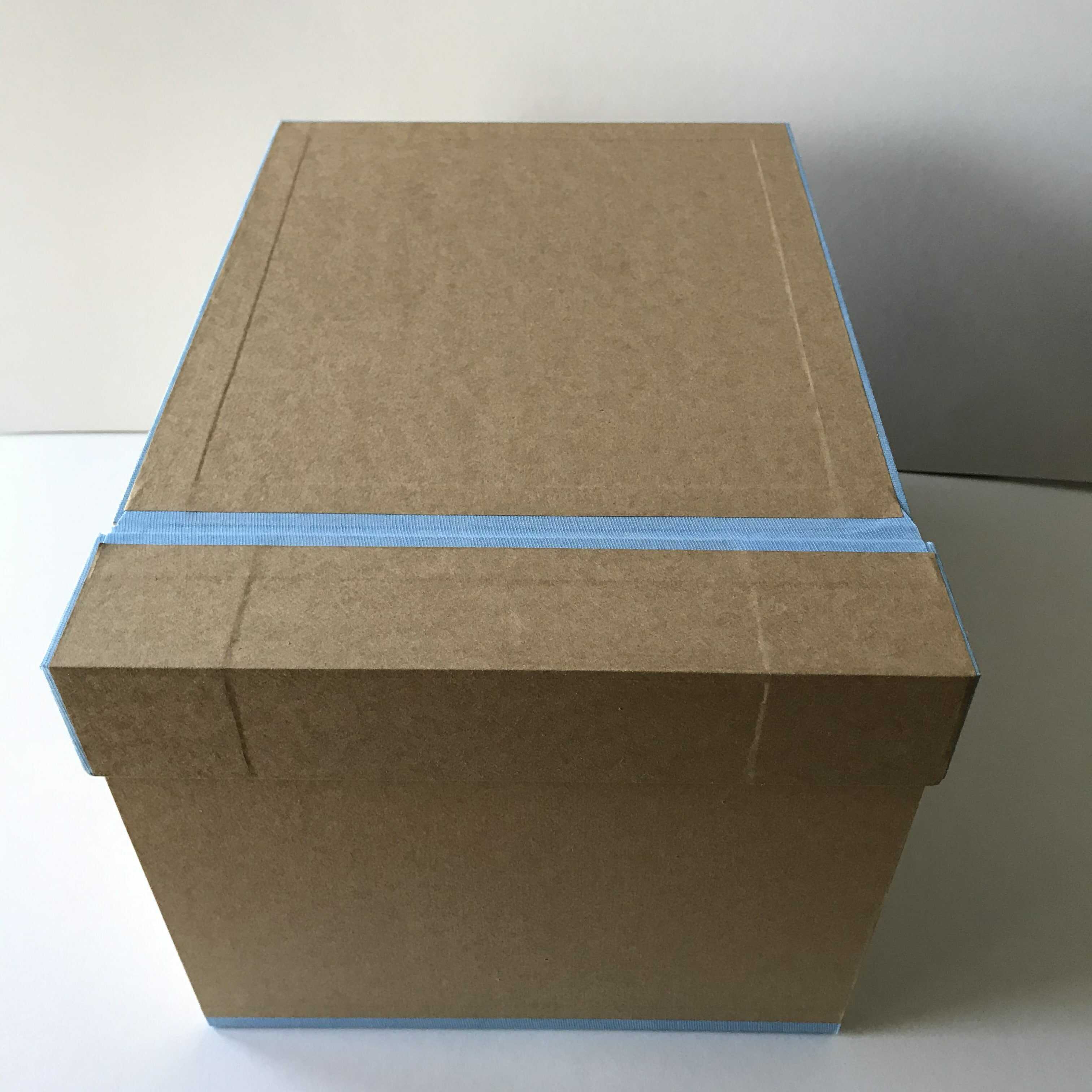 У один архівній короб поміщається декілька справ. Кришка щільно прилягає для захисту від пилу.
