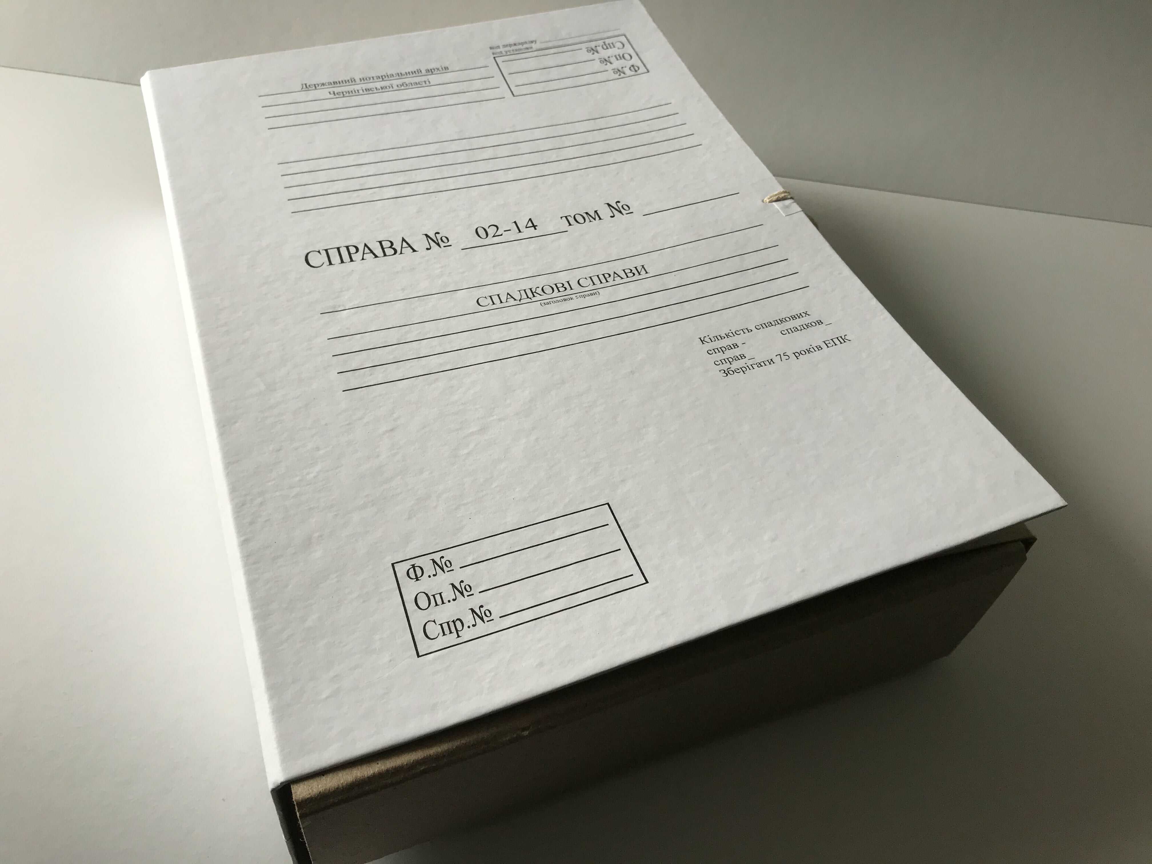 Підприємство виготовляє папки архівні для нотаріусів, архівні бокси, архівні короби для тривалого зберігання документів. Вся наша продукція виробляється з якісного палітурного крафт картону завтовшки від 1,5 мм до 2,0 мм. Відмінною особливістю нашої продукції а саме архівних папок є конструкція архівної папки, виготовленого з цільнокроєного картону і відповідає всім правилам нотаріального діловодства.