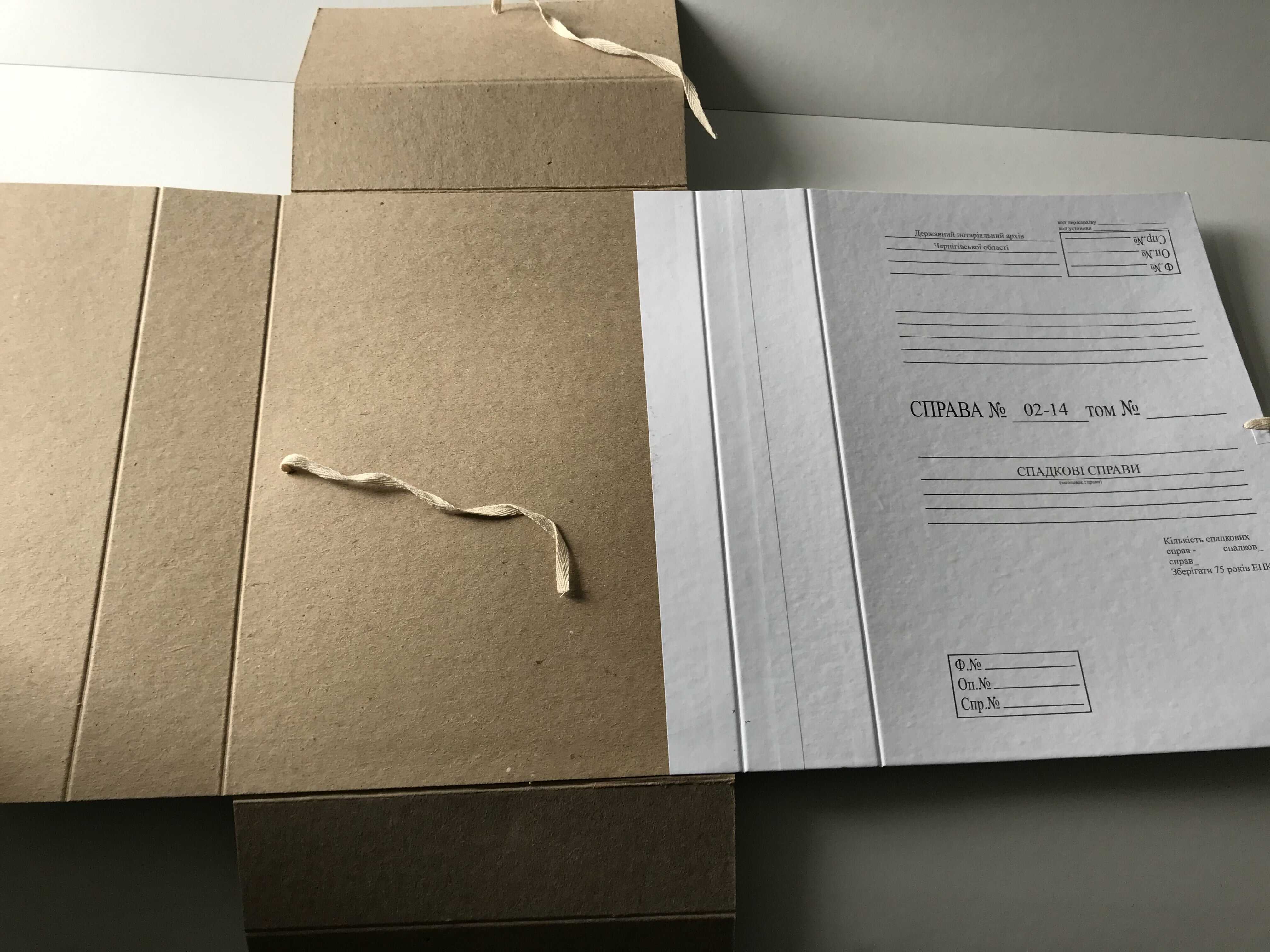 Ми виробляємо архівні папки як стандартного розміру з внутрішнім клапаном для прошивки документів та формування справ (нарядів), постійного (архівного) зберігання.