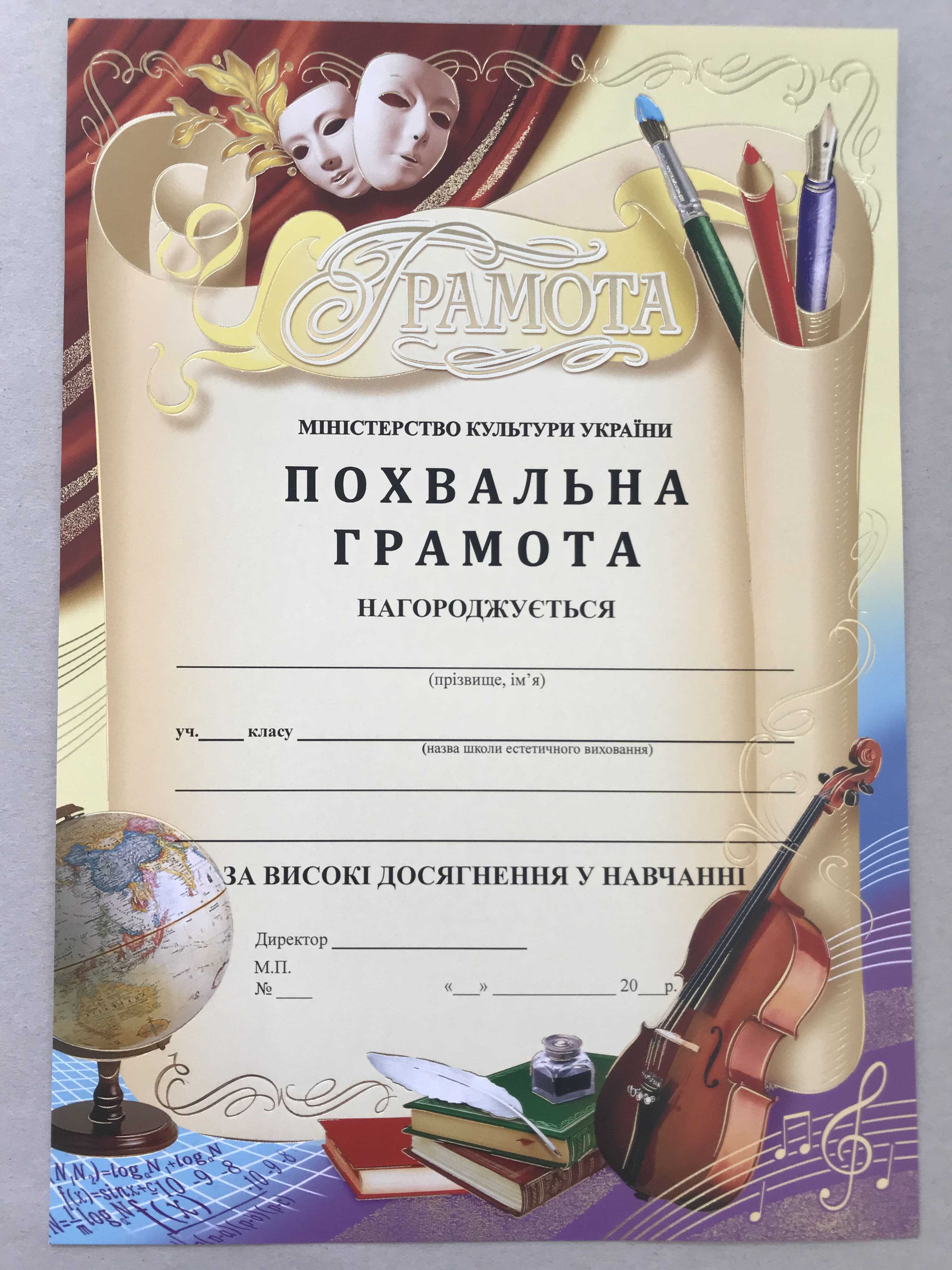 | 2 | Похвальна грамота 160 гр/м2 | А4 |