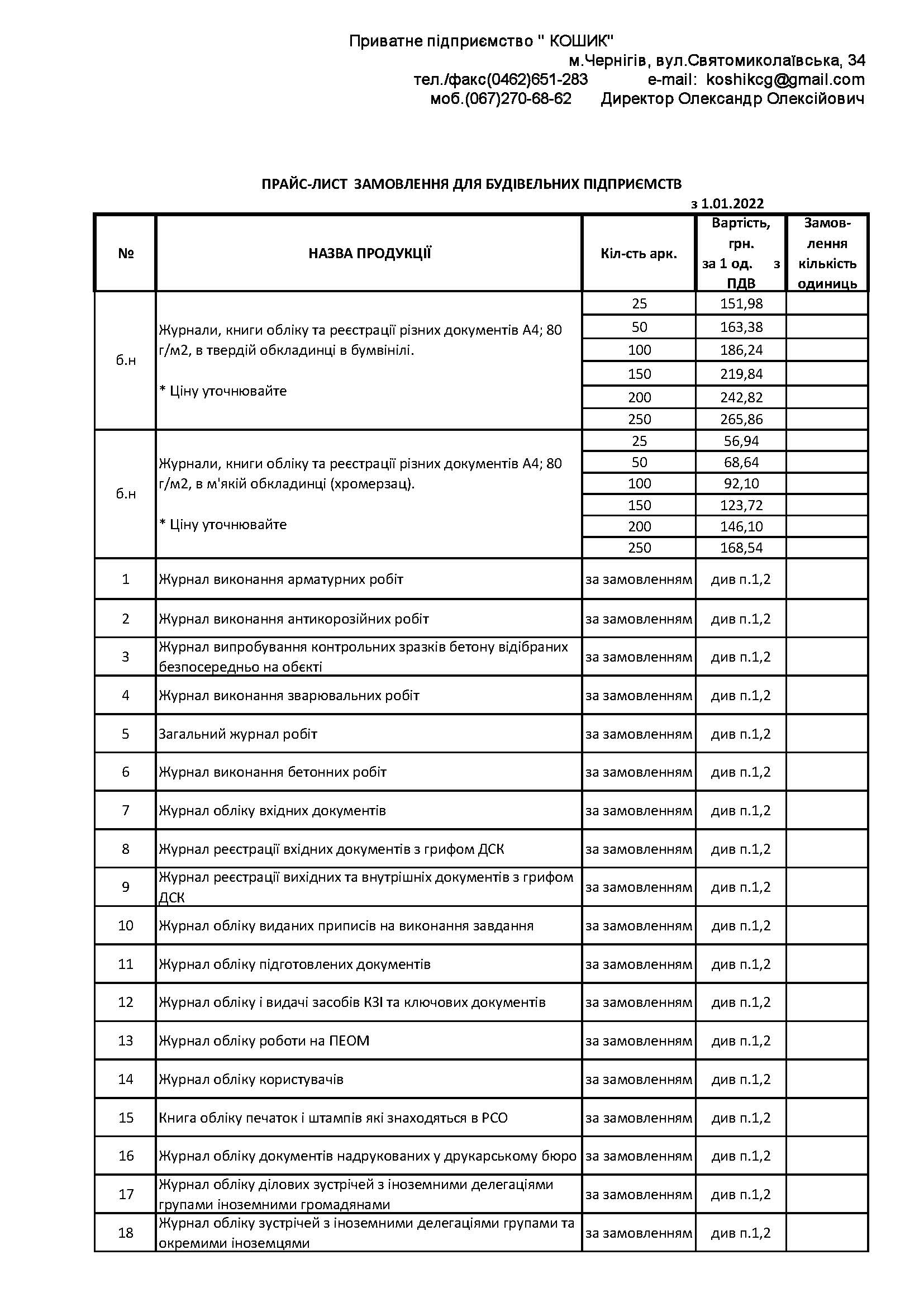 На друковану продукцію ДЛЯ БУДІВЕЛЬНИХ ПІДПРИЄМСТВСКАЧАТИ в форматі
