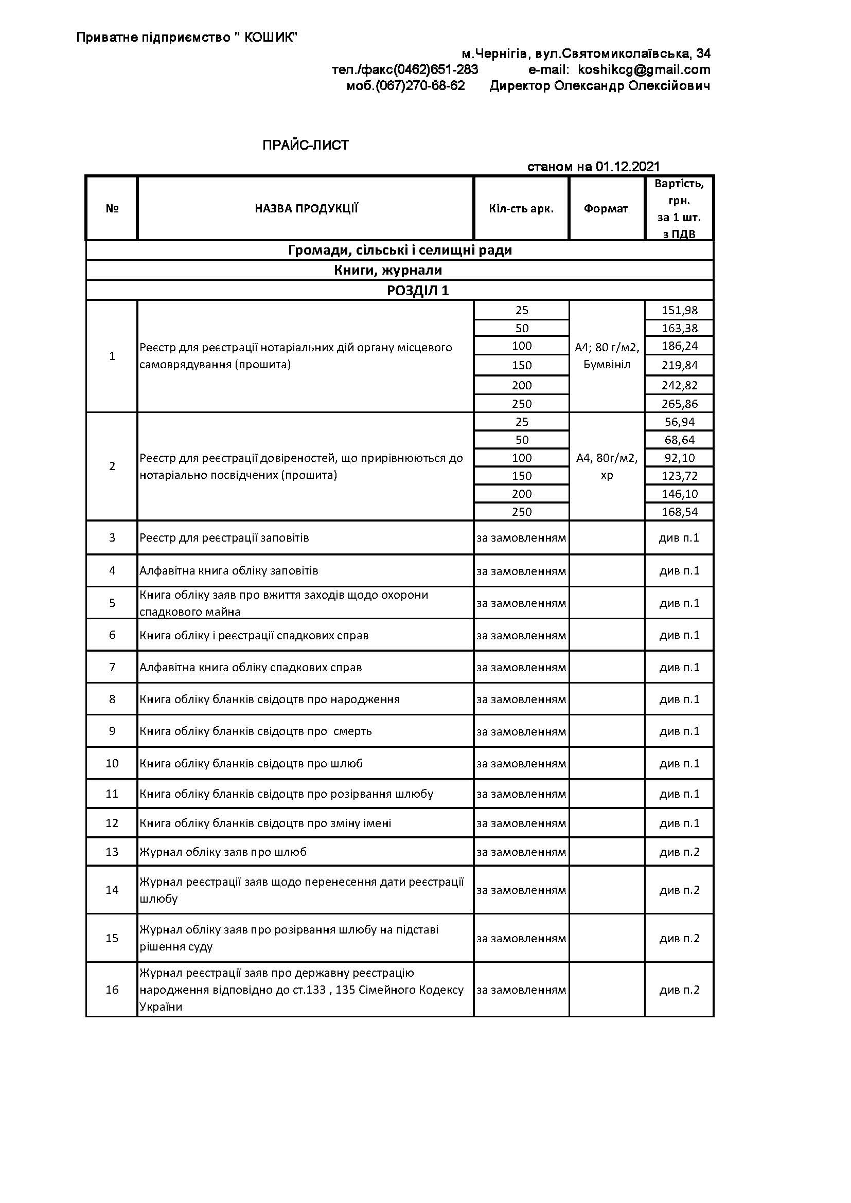 ПРАЙС-ЛИСТ