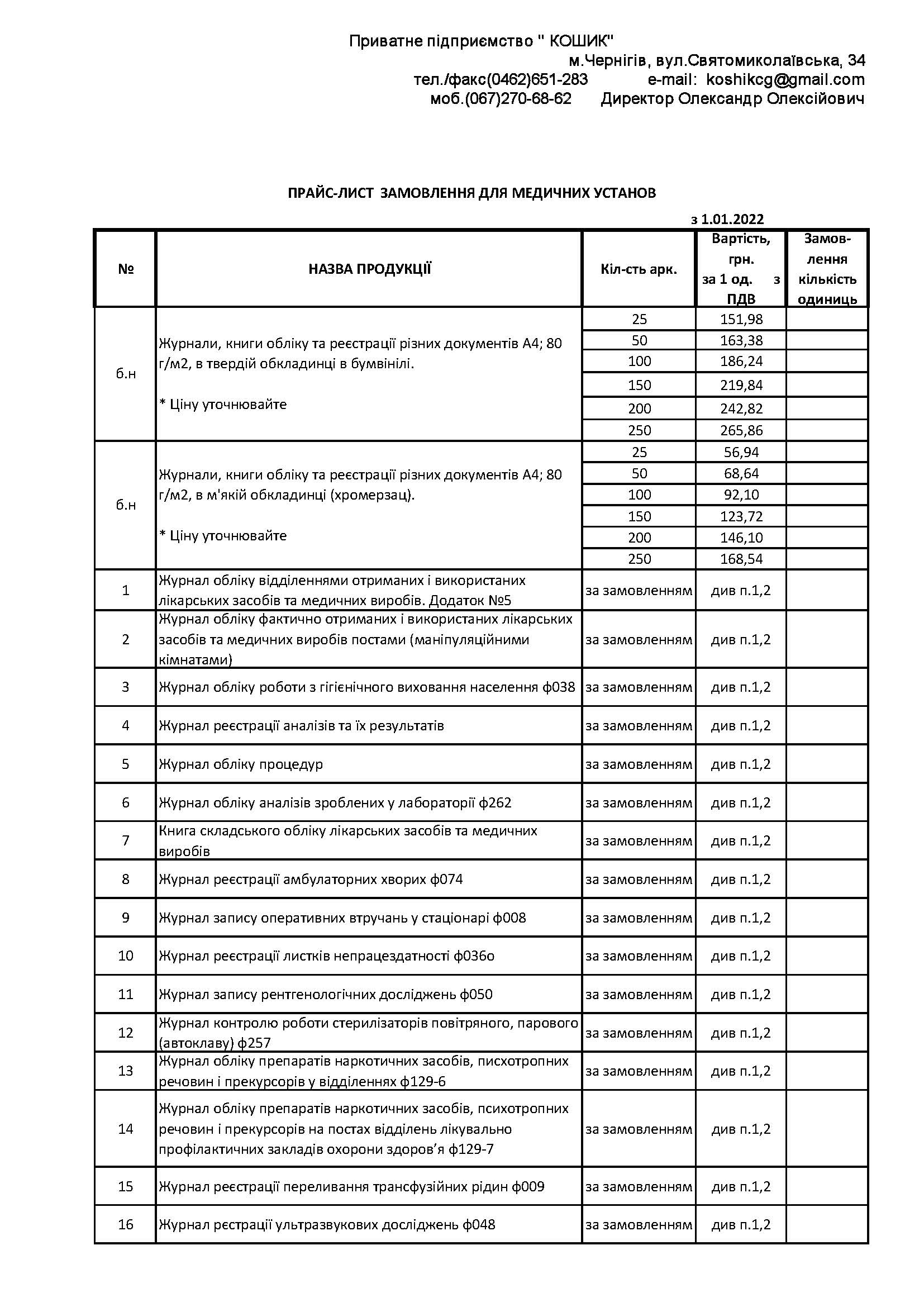 На друковану продукцію ДЛЯ МЕДИЧНИХ УСТАНОВСКАЧАТИ в форматі