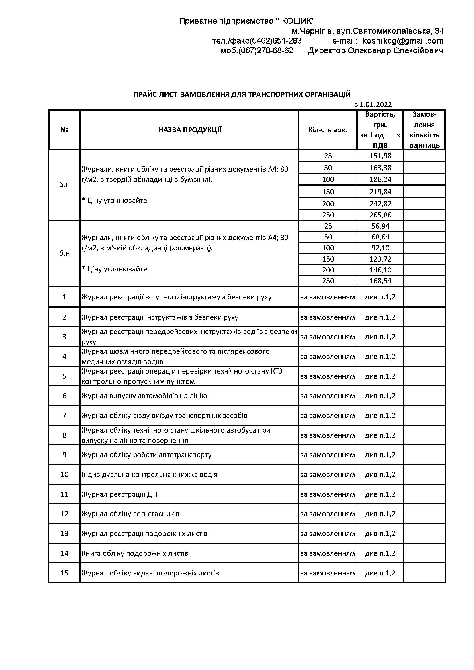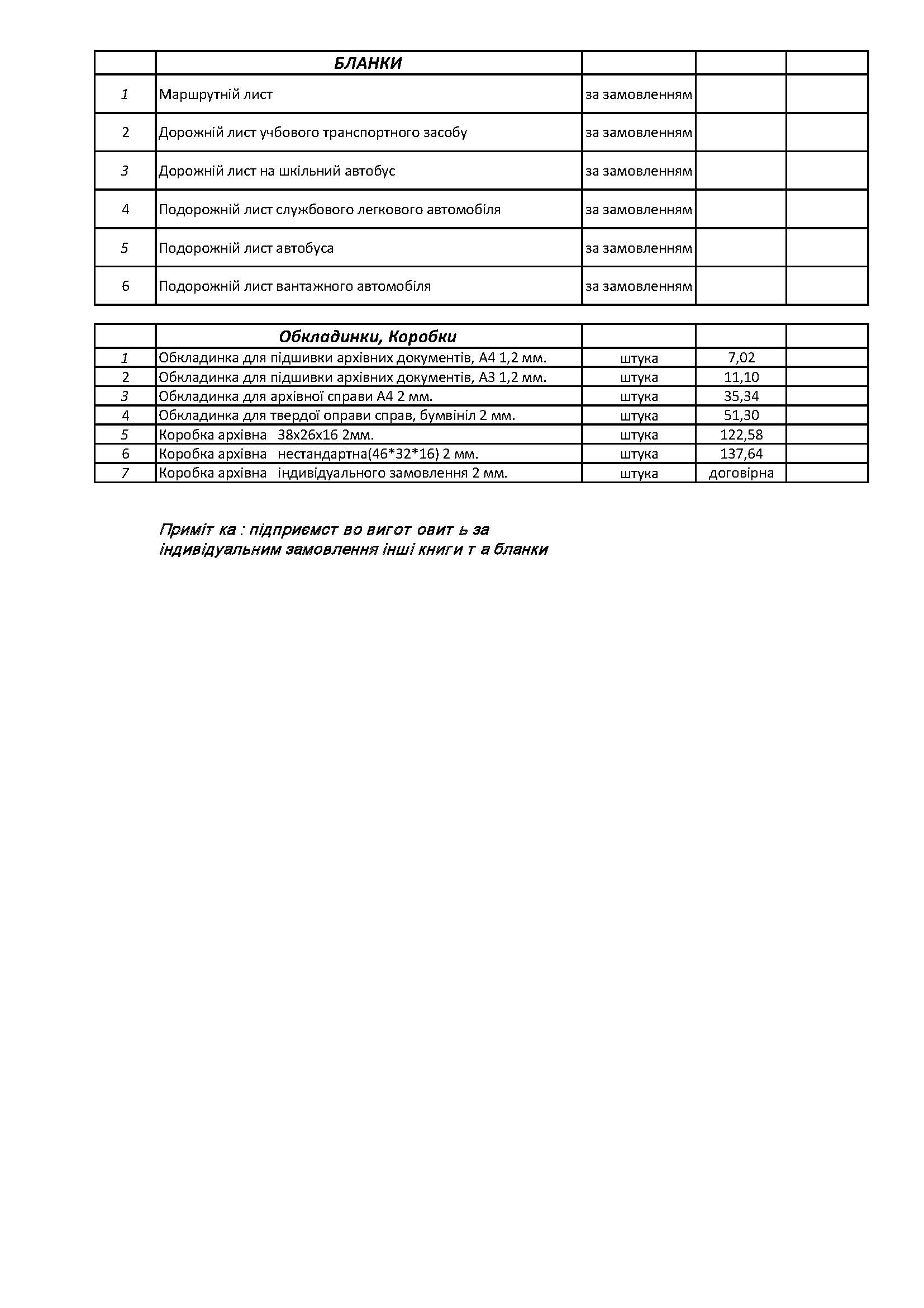 На друковану продукцію ДЛЯ ТРАНСПОРТНИХ ОРГАНІЗАЦІЙСКАЧАТИ в форматі