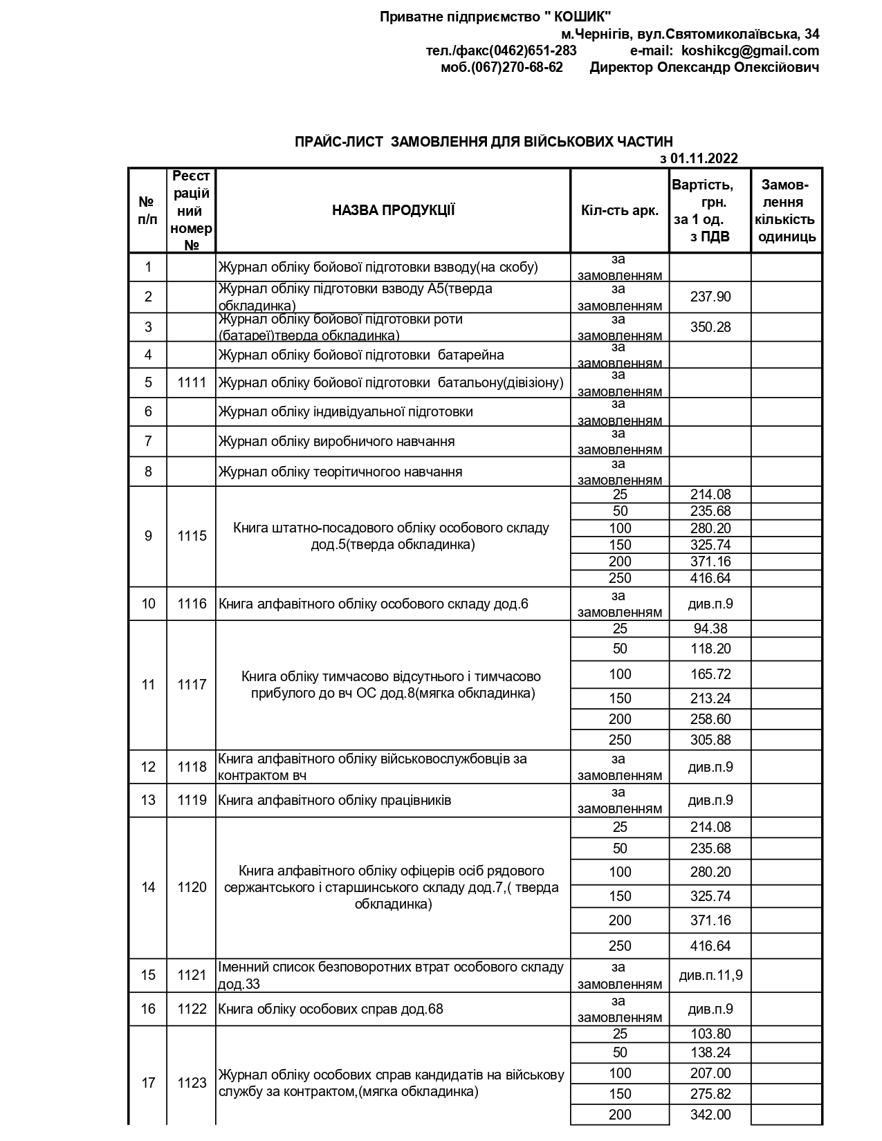 На друковану продукцію ДЛЯ ВІЙСЬКОВИХ ЧАСТИНСКАЧАТИ в форматі